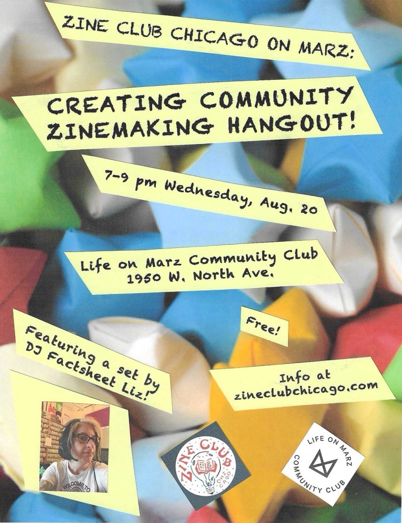 Zine Club Chicago is a mask-supportive environment; we’ll have masks available if you’d like to wear one.